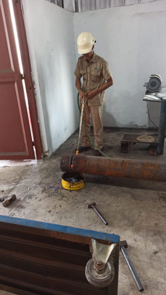 1. Continue potong roundbar untuk housing roller Bering roller screen crusher di coba pakai cutting torch blander