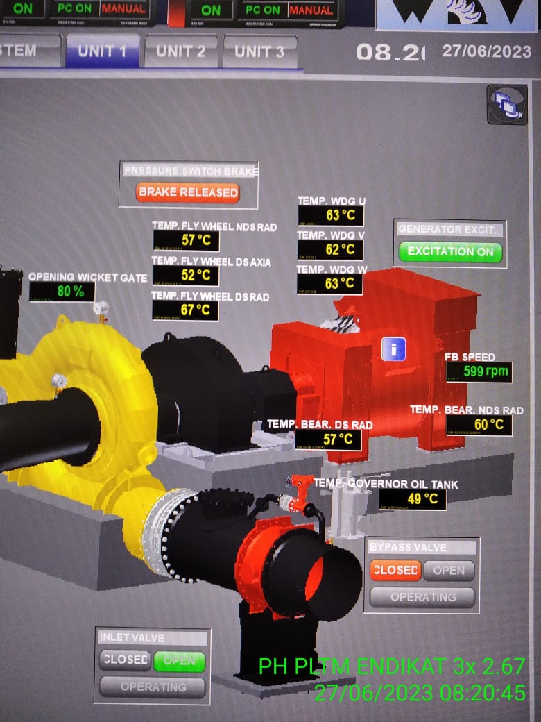 Kondisi Pembangkit PLTM Endikat 22 Januari 2024 Kondisi Operasi Mesin Turbine 1 = ON (0…