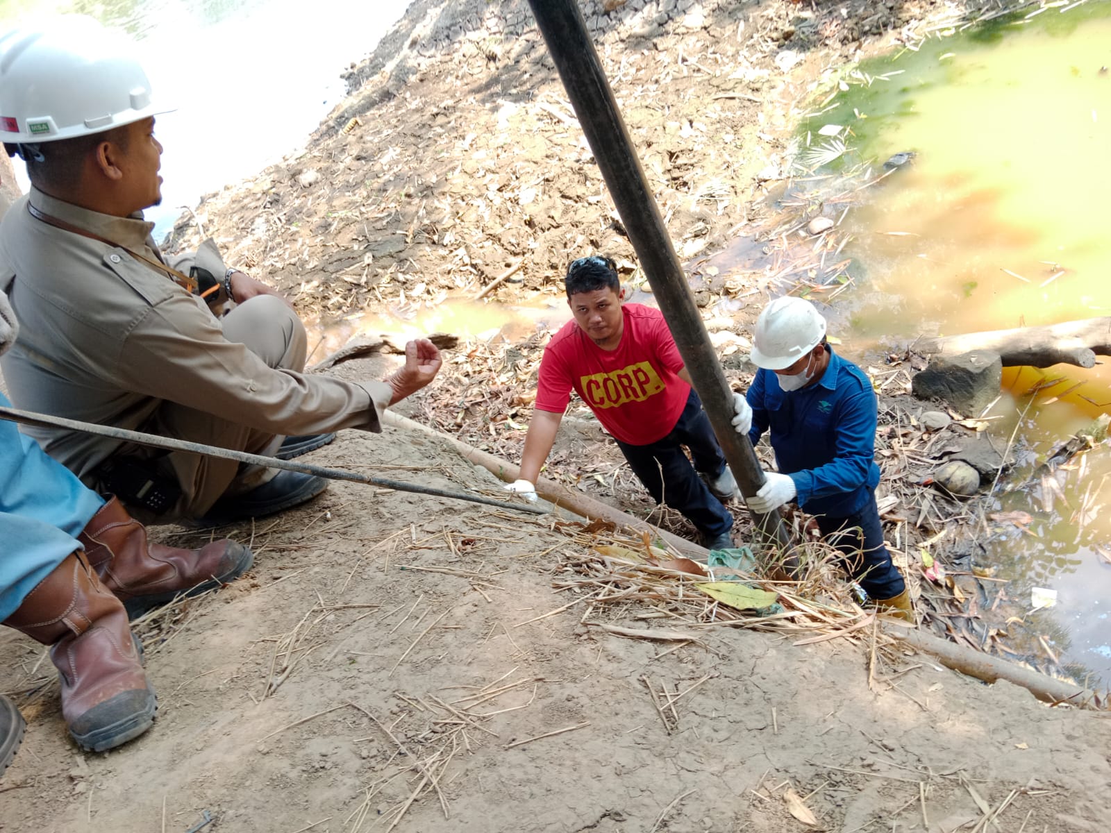 Penambahan suport conduit pipa crossing kabel ke ponton power PLTU & Perawatan foot valve di area sungai kontinue setiap hari pagi dan sore selama musim kemarau