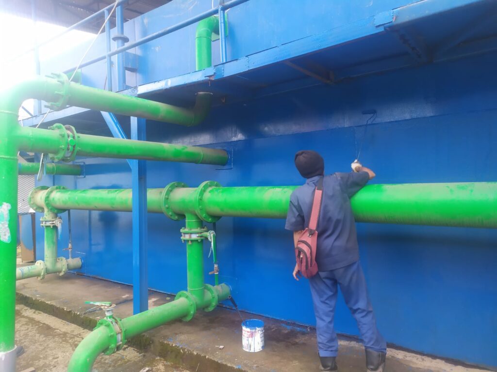 Melakukan pengecatan lantai WTP.