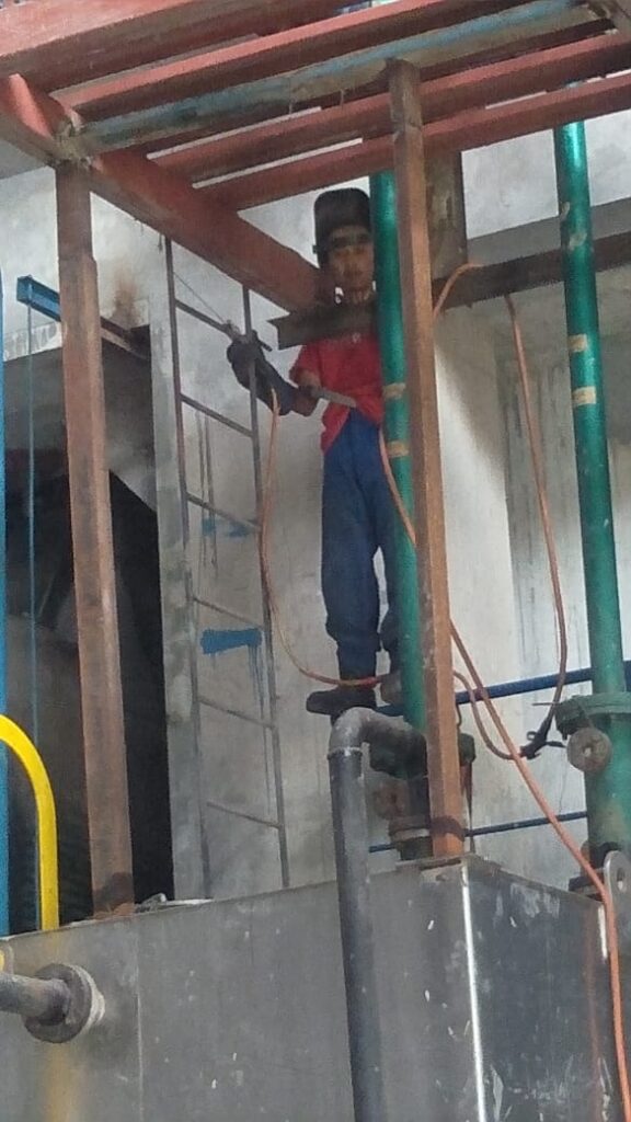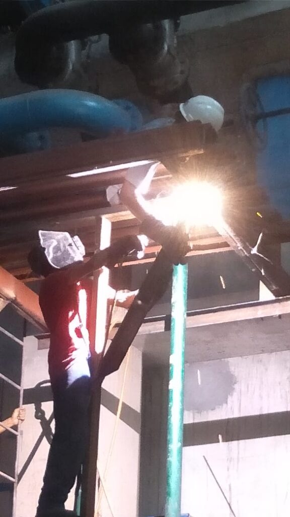 Melanjutkan fabrikasi maintenance dact diatas water jet tank.